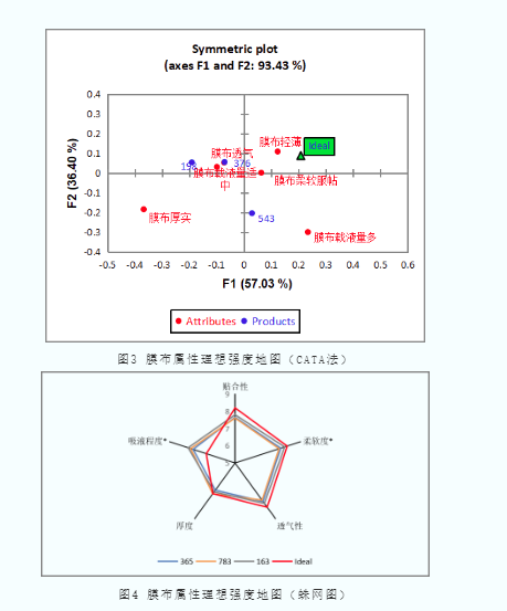 2.測試:將測試品使用順序進行隨機,消除使用順序?qū)υu分帶來的影響,除測試品的膚感、喜好度等方面的數(shù)據(jù)收集,并探究面膜的膜布、精華液的消費者理想強度