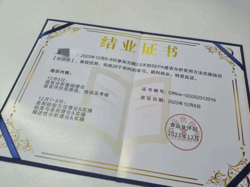 SEPA感官分析常用方法實操培訓(初級班)成功舉行!學員們完成培訓并圓滿結業(yè)。專業(yè)的事情需要專業(yè)的人來做!希望學員們帶著此次培訓班的“感官知識收獲”,能夠順利開展工作!我們的培訓工作在繼續(xù)進行,希望在后續(xù)的提升學習中能與大家再次見面,一起期待!
