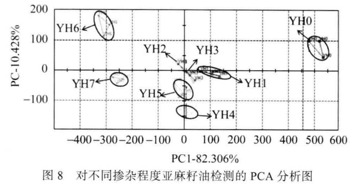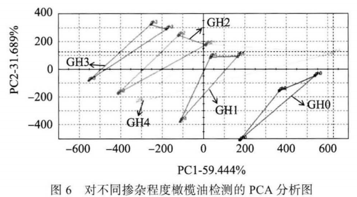 采用AlphaM.O.S公司的電子舌,對(duì)6種3組同類型、不同品牌、不同產(chǎn)地、不同生產(chǎn)工藝的油脂摻雜樣品進(jìn)行區(qū)分與識(shí)別,其檢測(cè)限可低至0.1%,識(shí)別指數(shù)為99分。相比于傳統(tǒng)的食用油摻假檢測(cè),如油脂理化指標(biāo)檢測(cè)、氣相色譜法等,電子舌的檢測(cè)方法更靈敏,更準(zhǔn)確,并且可以區(qū)分成分相近的同種油脂,該檢測(cè)方法有助于食用油的地區(qū)保護(hù)、品牌保護(hù)。