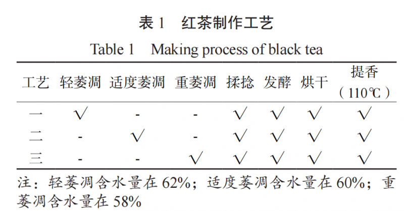 萎凋、揉捻(切)、發(fā)酵、干燥是紅茶加工的基本工序,各道工序不同程度地影響和決定了紅茶的最終品質(zhì)。而萎凋是紅茶加工的首道工序,受溫度、時間、攤放厚度等因素的影響。