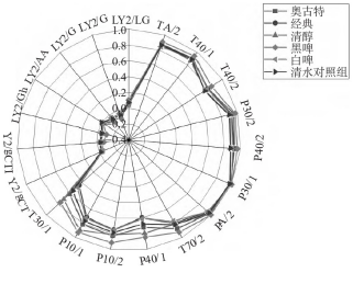 圖3 啤酒鴨電子舌分析結果雷達圖