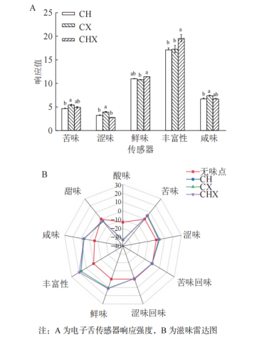 電子鼻電子舌聯(lián)用的電子感官技術(shù)已經(jīng)成為食品品質(zhì)風(fēng)味分析的重要手段。這兩種技術(shù)的聯(lián)合使用可以更加全面地解析食用菌素肉排的風(fēng)味特性,幫助生產(chǎn)廠家對(duì)食用菌素肉排的風(fēng)味進(jìn)行實(shí)時(shí)監(jiān)控和評(píng)估,確保產(chǎn)品質(zhì)量的穩(wěn)定性和一致性。