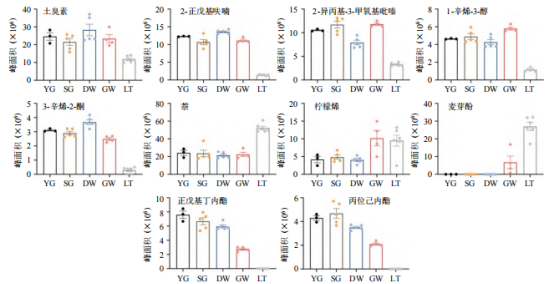綜合分析,略燙后曬干品較其他市場主流加工品,土臭素、2-正戊基呋喃、2-異丙基-3-甲氧基吡嗪、1-辛烯-3-醇、3-辛烯-2-酮這5種“特異氣味”成分得到了較好地祛除或降低,丙位己內(nèi)酯、正戊基丁內(nèi)酯這2種內(nèi)酯類成分未被檢測到,萘、檸檬烯、麥芽酚這些具有芳香特性的揮發(fā)性成分得到了提升或保留。Heracles NEO超快速氣相電子鼻分析