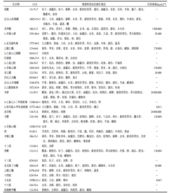 表3 AromChembase數(shù)據(jù)庫檢索出的氣味成分