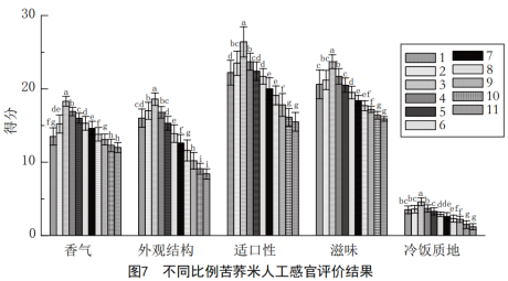 2.4不同比例苦蕎米飯的人工感官評價分析